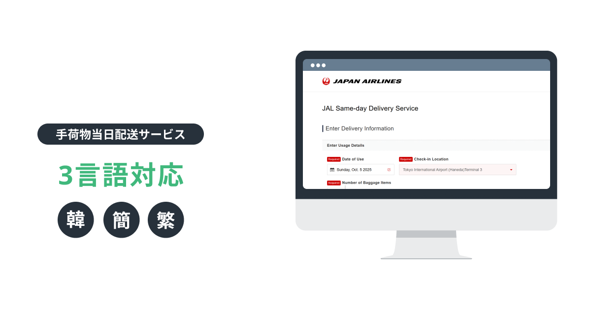 JAL の手荷物当日配送サービスのサービスサイトに WOVN.io が導入され、英語から3言語(韓国語・簡体字・繁体字)に多言語化しています。
