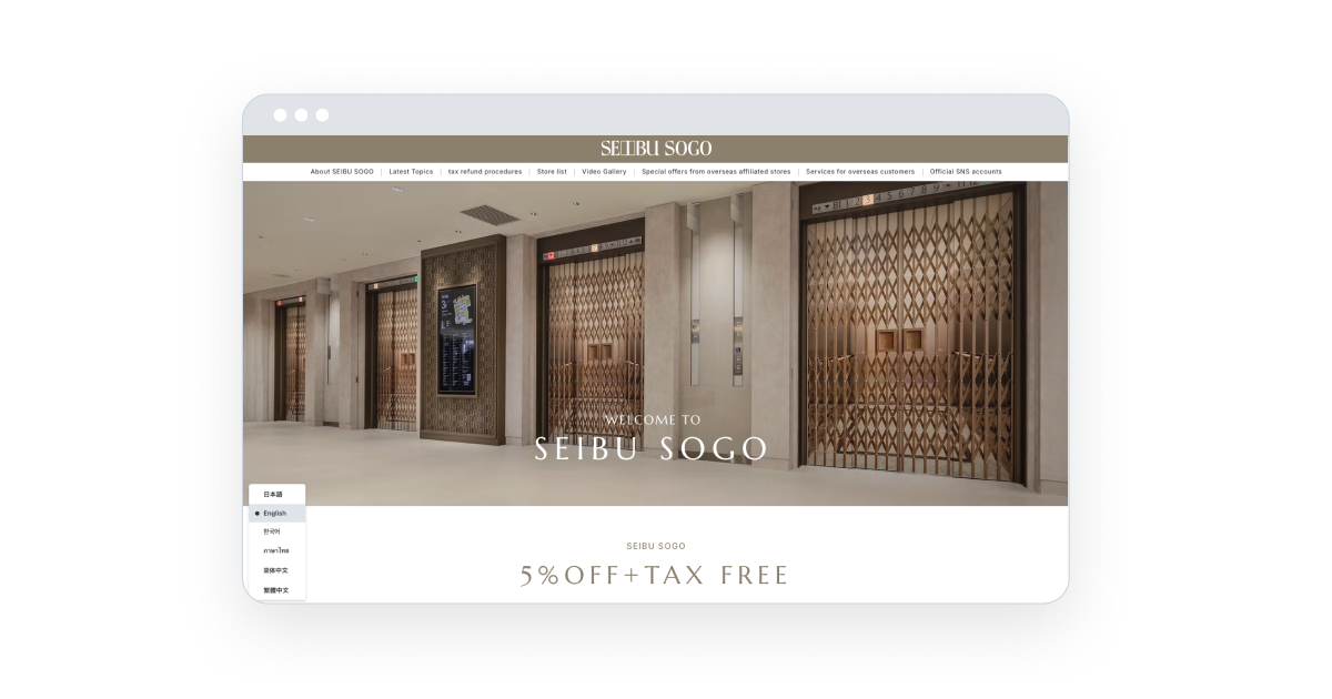 そごう・西武が運営する店舗サイトを、WOVN.io で5言語(英語、簡体字、繁体字、韓国語、タイ語)に対応しています。
